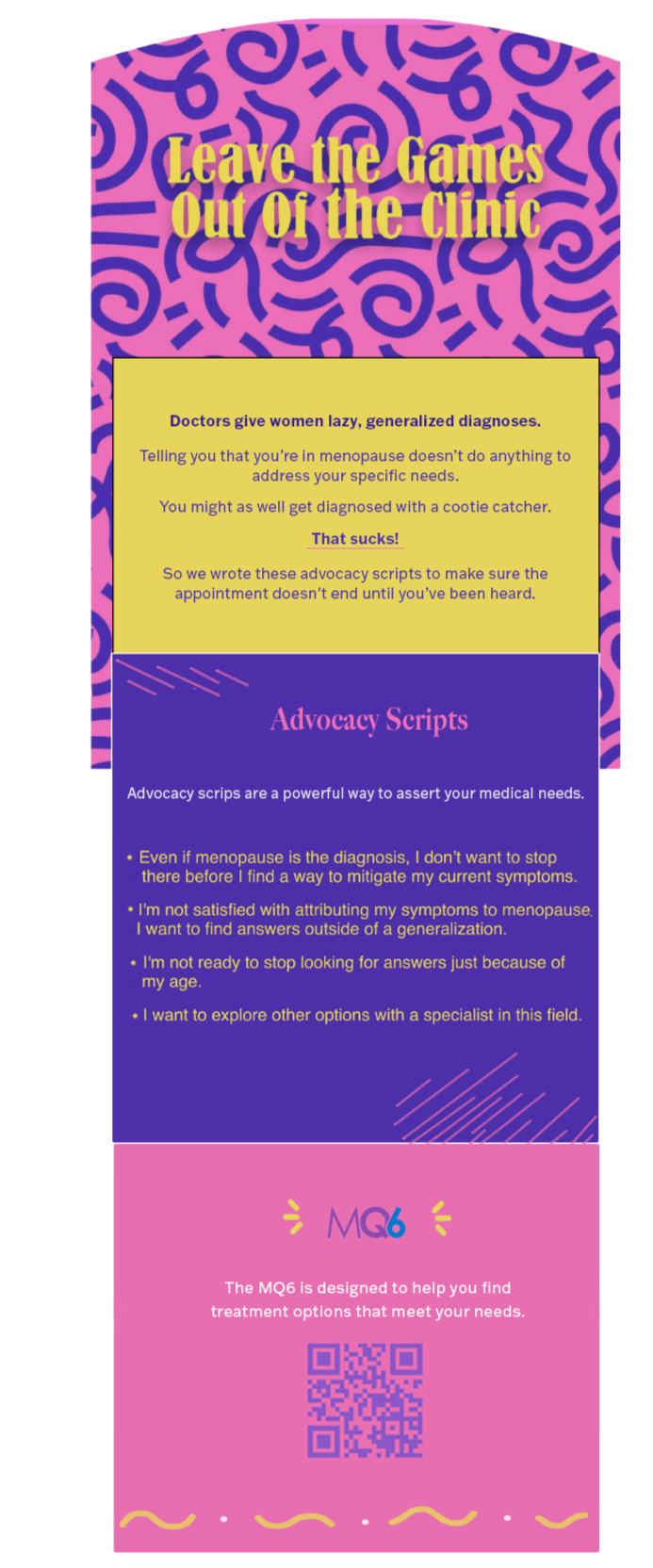 The packaging unfolds into a brochure with self advocacy tools that encourage the reader to leave the games out of the clinic.